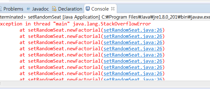 이는 newFactorial()이 재귀 호출하면서 메모리의 스택을 계속 누적해서 사용하다가 스택이 부족하여 스택 오버플로우가 발생하기 때문입니다.