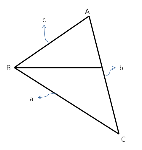 (꼭짓점 1, 2, 3을 A, B, C라고 하고 마주 보는 대변을 a, b, c라고 한다.)
