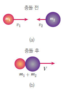 충돌 후 물체들이 한 덩어리가 되어 물체들의 전체 에너지가 보존되지 않고 감소하는 경우.